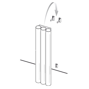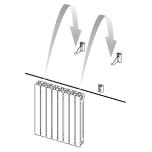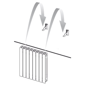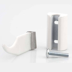 Terne di mensole con staffe ad uncino plastificate argento.